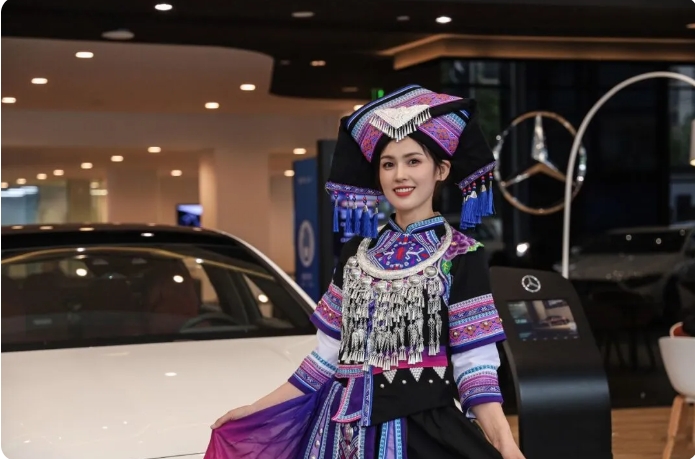 壯族的傳統(tǒng)服飾衣裙顏色為藍黑色,色澤鮮艷且不易褪色,既耐臟又耐穿,充分體現(xiàn)了壯族人民的智慧和文化,也寄托了壯族人民對美好生活的向往和追求。圖為康城汽車集團冠星公司員工展示壯族服飾。