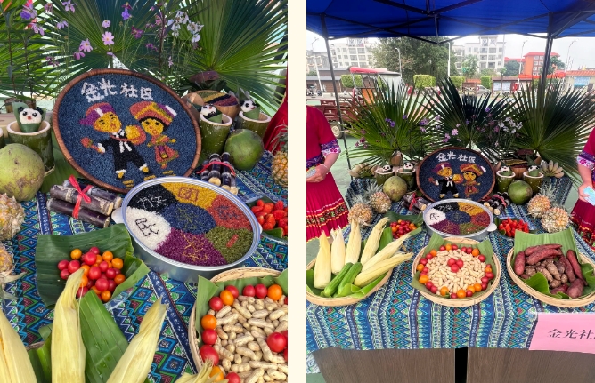 大家用簸箕拼盤將層次分明、色彩斑斕的各項(xiàng)珍饈有規(guī)律的擺放到簸箕中,從五谷雜糧的馥郁到山珍海味的鮮美,再到田園時蔬的清香,這些菜肴不僅口感獨(dú)特,而且蘊(yùn)含著豐富的民族文化內(nèi)涵,體現(xiàn)了人們對美好生活的向往和追求。圖為集團(tuán)公司職工前往社區(qū)參加活動拍攝的特色美食照片。