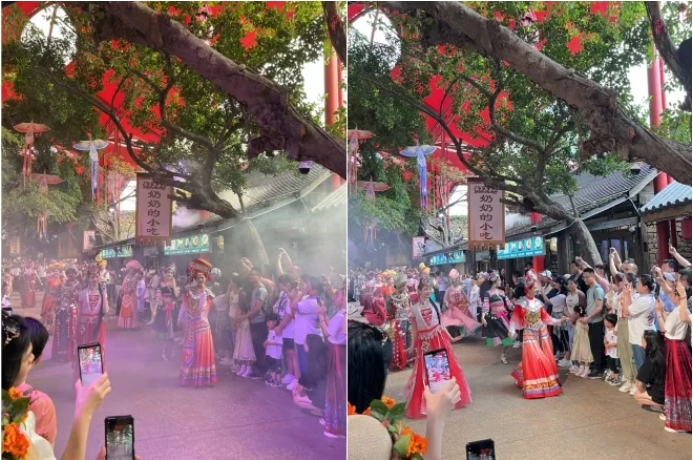 “三月三”是壯族人民傳統(tǒng)的節(jié)日,又稱“歌仙節(jié)”,壯族人以歌來講述事情、表露情感、渲泄情緒?!岸嘀x了,多謝四方眾鄉(xiāng)親,我家沒有好茶飯,只有山歌敬親人呀敬親人……”山歌唱起,銅鼓喧天,一曲敬酒歌充分體現(xiàn)了廣西壯族人民的熱情好客,傳遞了美好的理念與情感。劉三姐與阿牛哥的美好傳說很好地展現(xiàn)了廣西“三月三”的民族風(fēng)情。