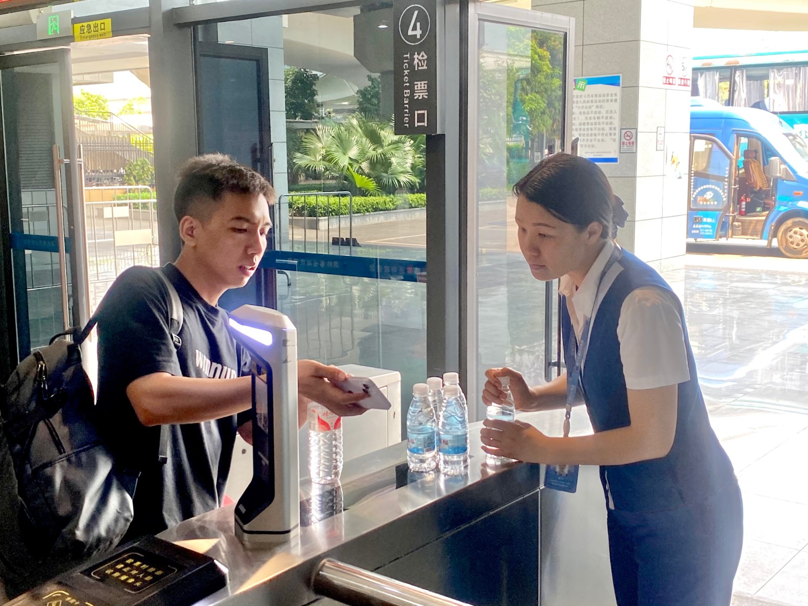 售票員微笑面對乘客,耐心為旅客答疑解惑,幫助旅客提供最佳出行選擇;“三品”檢查員認真做到“逢包必檢、逢液必查”,保障旅客安全出行;檢票員嚴格查驗車輛及駕駛員證件,熱情招呼旅客檢票乘車,為來往的旅客做好乘車引導服務;安全檢驗員認真做好車輛發(fā)車前安全設施設備檢查及發(fā)車前安全告知工作。